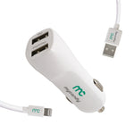 3.4A DUAL USB CAR CHARGER WITH MFI LIGHTNING CHARGER 1M WHITE