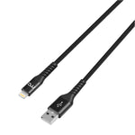Black 1.2 meter USB A to MFI lightning cable, supports fast charging and data-transfer and is tangle-free with multiple protective and braided nylon layers to add both durability and style....
