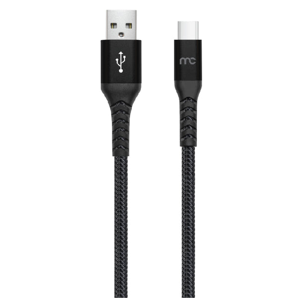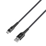 Black 1.2 meter USB A to Type C cable, supports fast charging and data-transfer and is tangle-free with multiple protective and braided nylon layers to add both durability and style....
